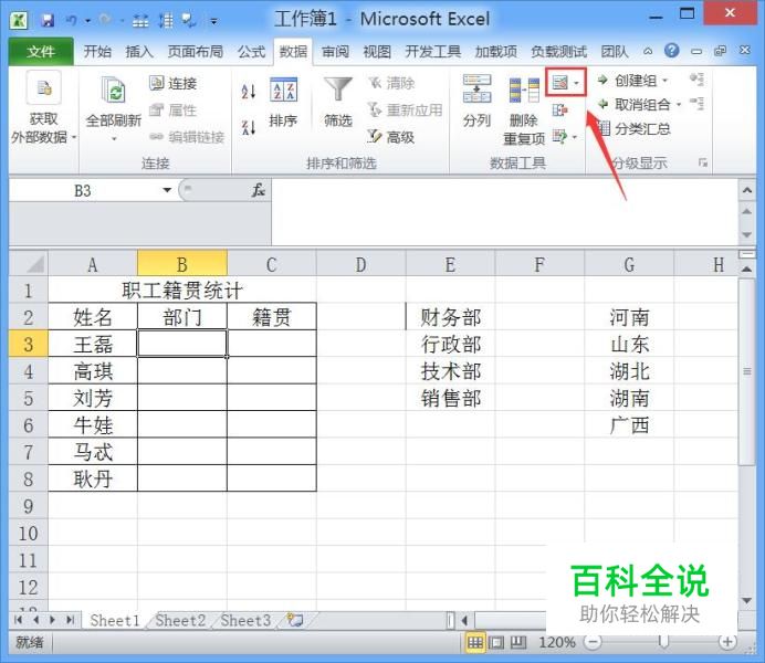 点击数据选项,在数据的工具区里找到数据有效性选项,如图所示: