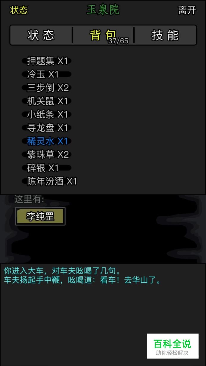 这一章的主线任务是给方敬渊送酒,我们就如副本之后,对话李纯罡,得到一瓶酒。