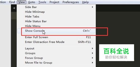 安装主题之前需要先安装package control,选择View菜单下面的Show Console选项,如下图所示