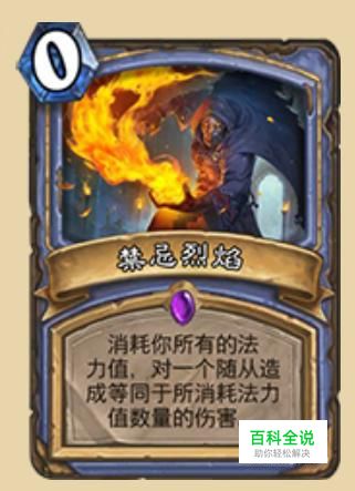 禁忌烈焰,根据费用解怪,剩6费就能打6点伤害,最大的优点就是灵活,不过性价比一般,想想火球4费打6还能打脸,它只能打怪还只有4费打4,所以出场率也一般。