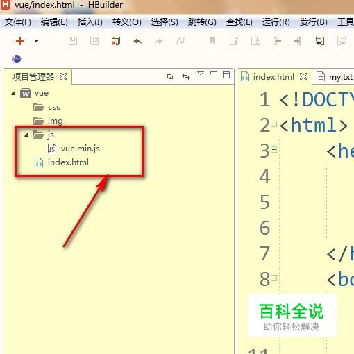 打开Hbuilder,新建一个web项目,然后把vue.js插件放入自己指定的文件夹。