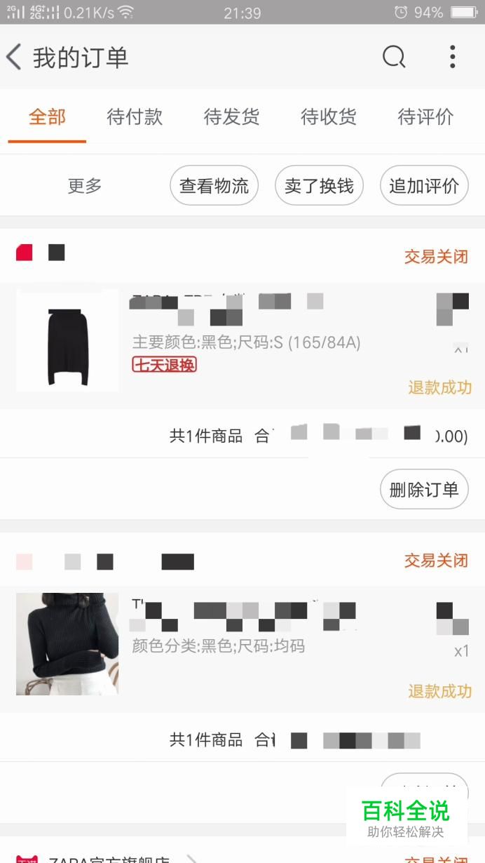 可以看到,订单界面上没有“发表评价”的字样,在订单上方我们也会注意到红色字体标注的“交易关闭”。