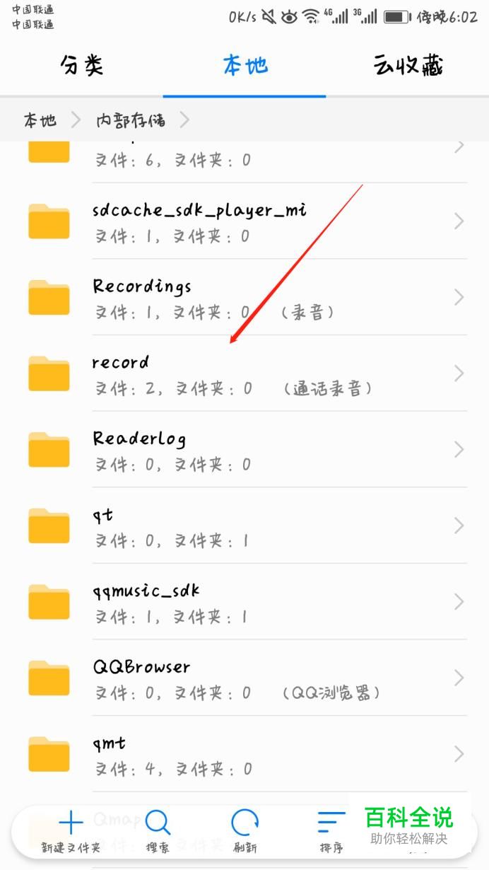 找到后的record文件夹如下图所示,可以清楚的看见有通话录音几个字。