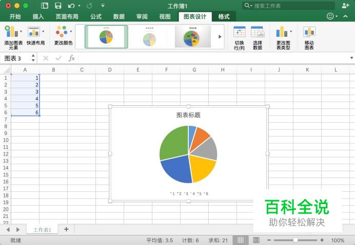 添加完成之后,相应的数据会以不同占比的部分排列到圆形图中。