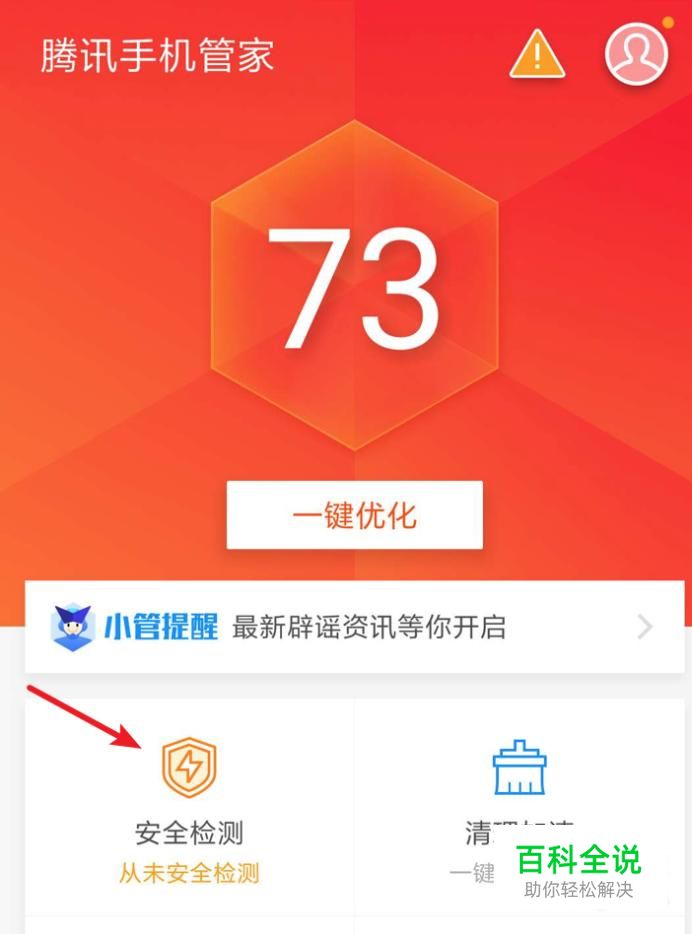 打开后,在首页就可以看到‘安全检测’,点击打开