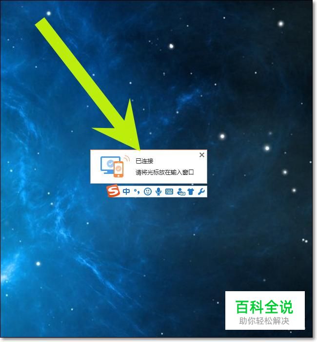 在电脑上面的搜狗输入法上方可以看界面提示我们已连接成功。