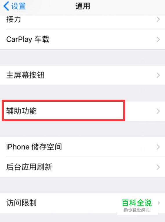 调整系统字体大小 打开“设置”,进入“通用”界面,找到“辅助功能”选项。