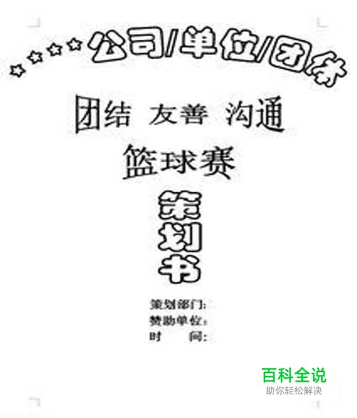 确定策划书题目: 题目应该以“xxx学校xxx部门的xxx活动策划书”或“xxx公司xx部门的xx活动策划书”的形式放在封面的顶部。让人可以一眼就看出哪个部门的什么活动,主题突出。
