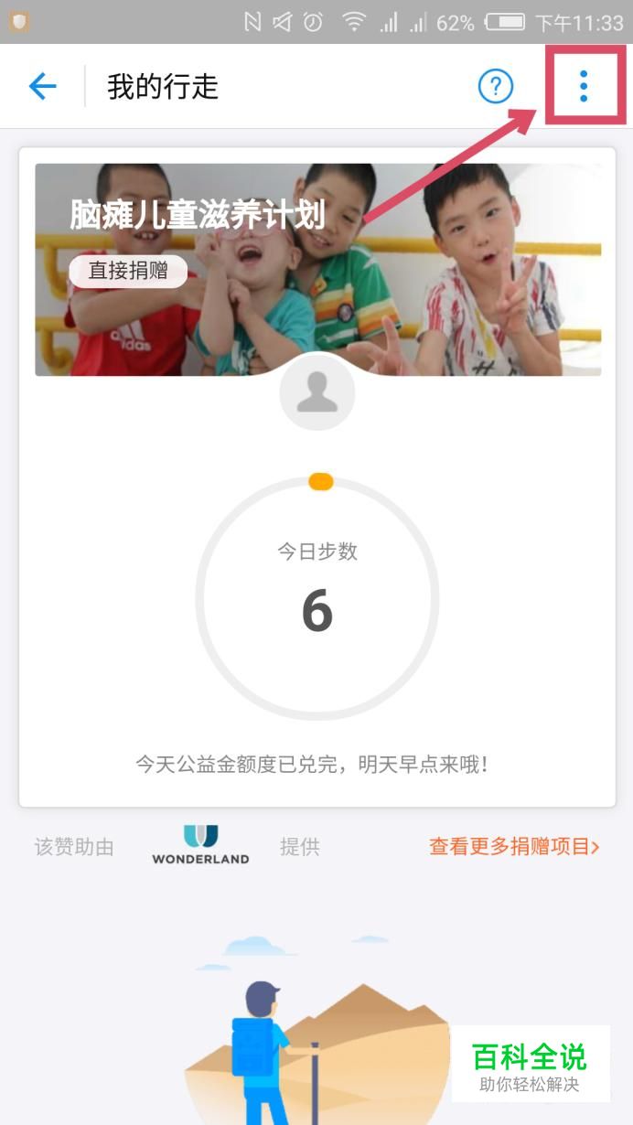 在“行走捐”右上角找到三个点并点击。