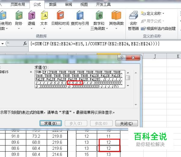 以H15单元格的公式为例:IF嵌套函数是指判断在E2:E24单元格区域里,有没分数大于等于E15单元格里的分数,如果有则为TRUE。 点开公式求值对话框,我们可以看到运算结果有14个TRUE,这说明有14个单元格里的数值大于等于E15单元格里的分数。这14个TRUE将参与到第二个参数COUNTIF函数的计算中。新手注意:TRUE的逻辑值=1,不是按照14个单元格的总分参与计算哦。