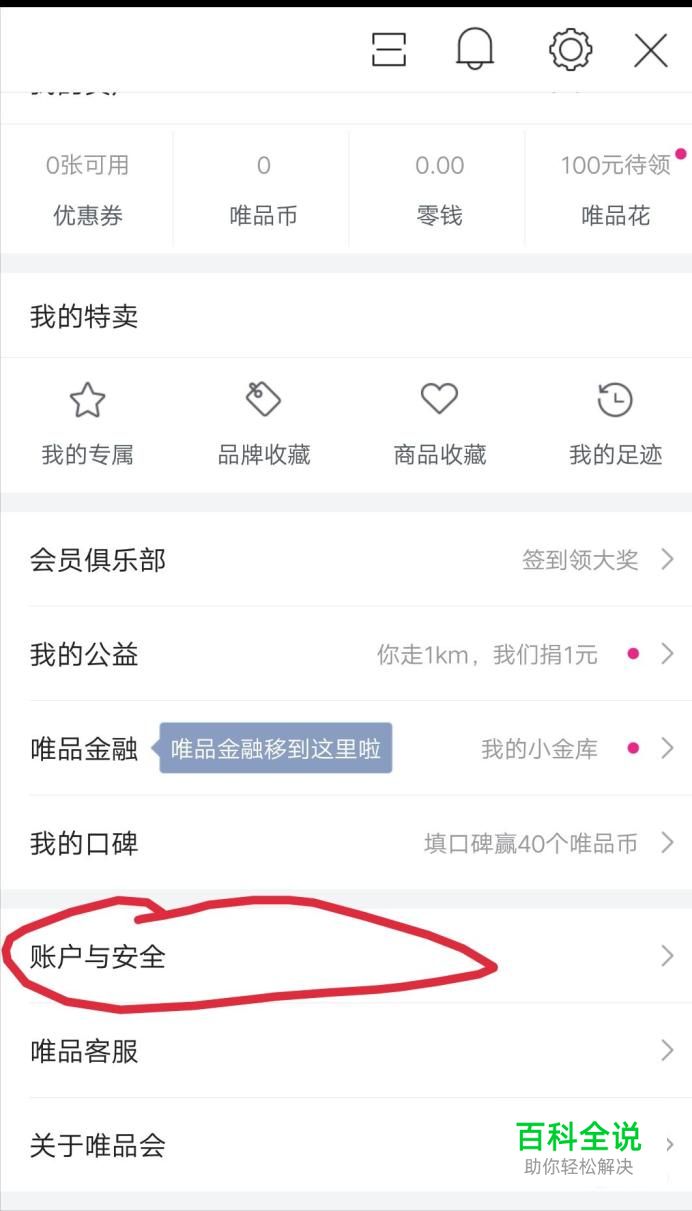 打开唯品会,在个人中心找到账户与安全,点击进入,如下图所示。