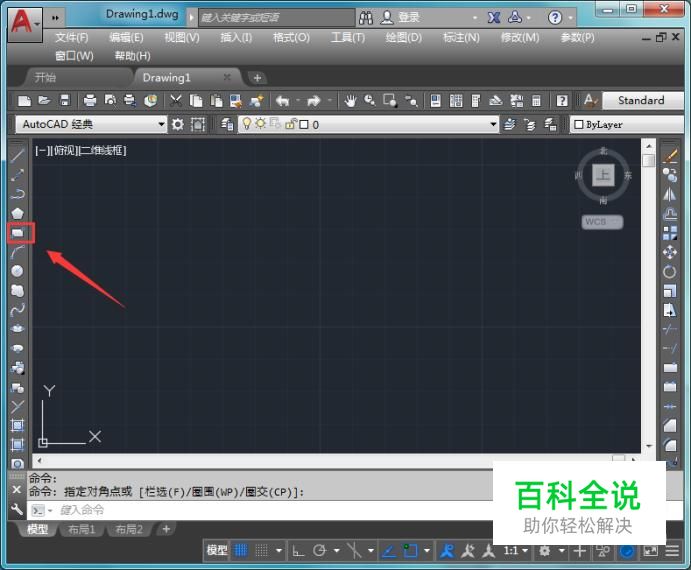 打开CAD之后在左侧找到矩形命令,如图所示: