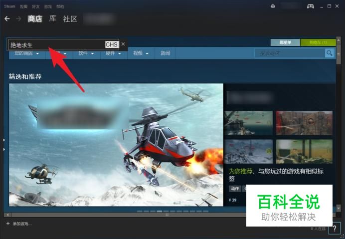 进入商店后输入绝地求生关键字搜索吃鸡游戏。