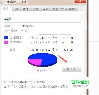 打开属性窗口后,点击‘磁盘清理’