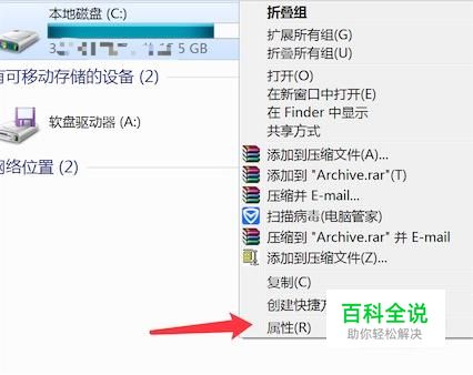 右键点击你的C盘(系统盘),然后在菜单里点击‘属性’