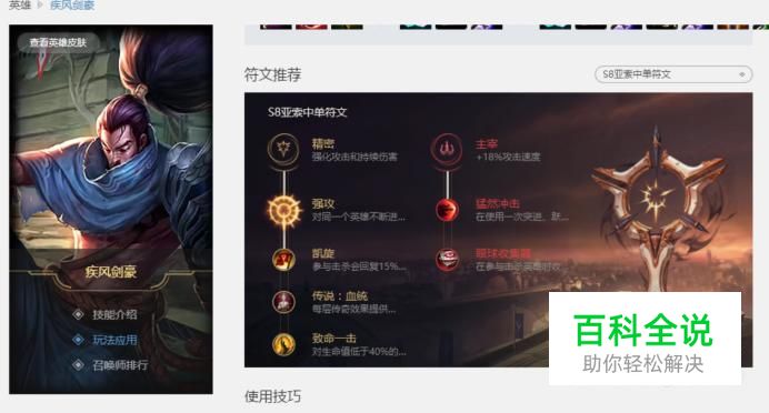 副符文建议点:主宰,提供的攻击速度可以使亚索打出更多的普攻伤害,切死敌方射手。
