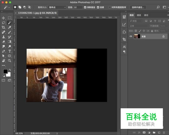 打开PS软件,拖入需要处理的图片以打开,如下图,人物的脸部由于逆光造成了偏暗的效果,五官都有点儿模糊了,我们需要进行修正。