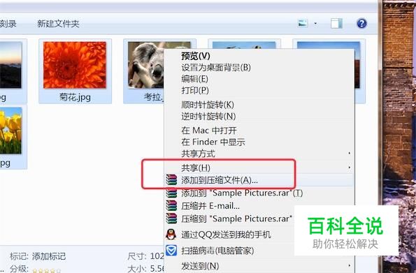 右键点击这些图片,在菜单上选择‘添加到压缩文件’