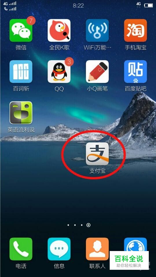 首先在手机界面上找到支付宝软件,点击打开进入: