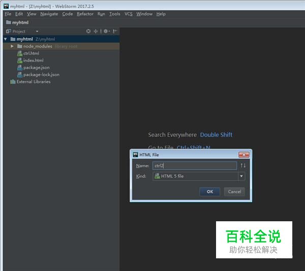 打开编译环境(webstorm),在工程文件夹里面新建一个HTML文件: