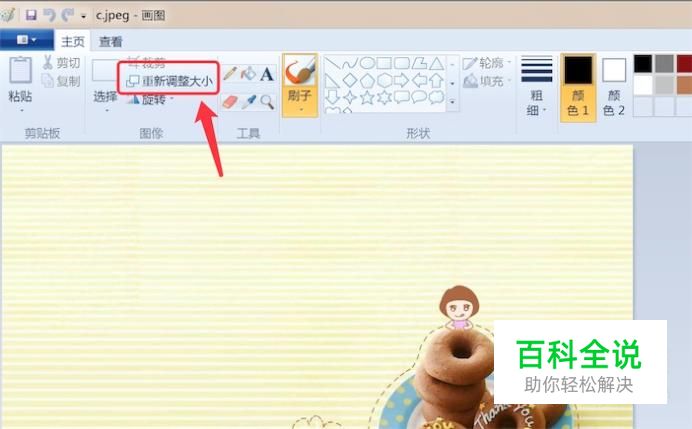 用画图打开这张图片,并点击菜单栏上的‘重新调整大小’按钮
