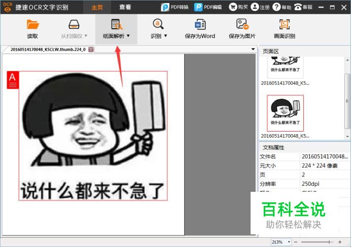 纸面解析完成后,点击识别按钮,识别的文字会出现在右侧空白区域
