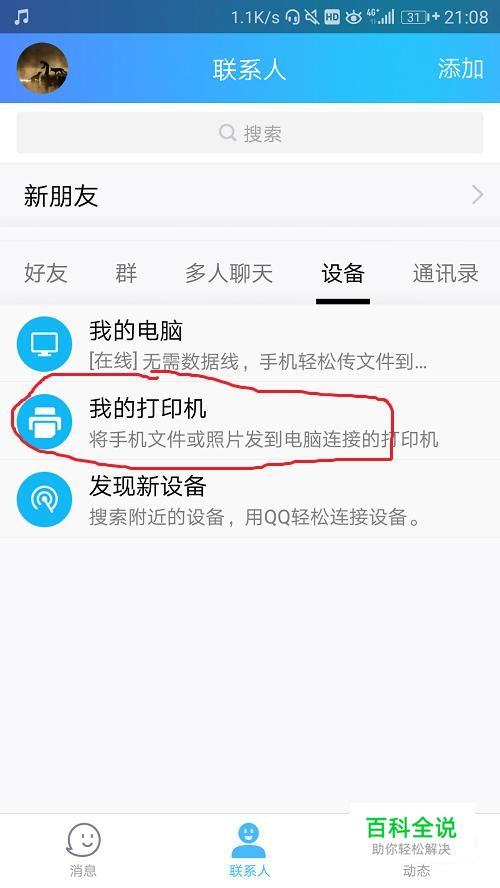 第一步,打开手机QQ点击到联系一栏可以看见我的设备。