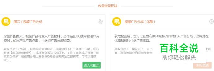 我们要获取收益首先最重要的是知道收益开通的条件,这里就分图文和视频,图文收益开通的条件是:已转正,且信用分为100分,且满足以下任一条件: 5星,或已开通【图文原创保护】,或质量指数达105以上。(注:在您成功开通“图文原创保护”或信用分刚上升到100分的当天无法立即获取,可待次日获取)。 视频分成的获取资质:二星及以上,且已开通【视频原创保护】的创作者,作品要求画面、声音等部分均由创作者亲自完成。