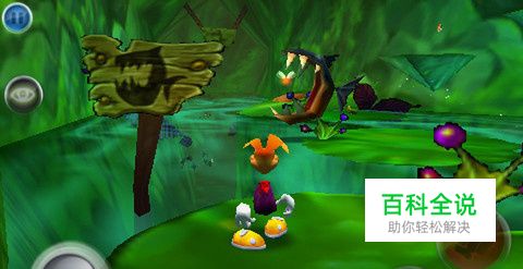 第二个敌人附近有一个笼子:将他打倒之后,用桶去砸金属门。笼子里有个摆动能量子,有了它,雷曼就可以从两棵棕榈树上进入阳台。
