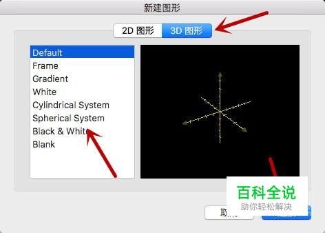 点击后弹框提示新建图形,在上方列表中点击“3D图形”,然后点选一个样式,点击“选取”