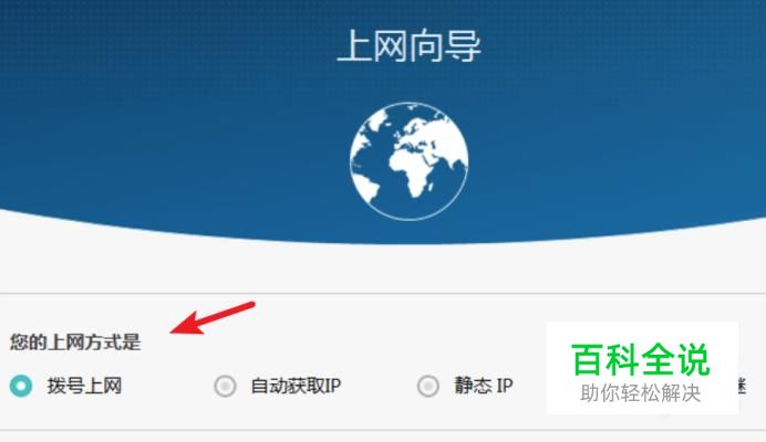 向导的第一步需要先设置自己的上网方式,现在很多都是宽带拨号的方式了。