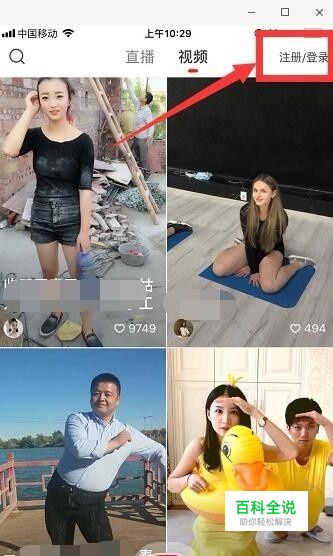 打开手机上的火山小视频,选择“注册/登录”。