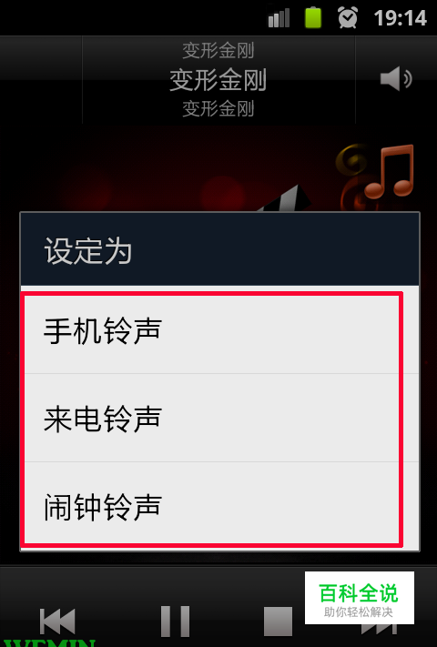 点击【设定为】后,出现一个窗口,根据提示设置成需要的铃声就可以了。