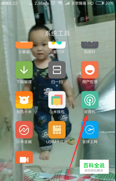 智能手机的这个收音机功能基本上是在系统工具里边,如图所示,点击手机上的系统工具。