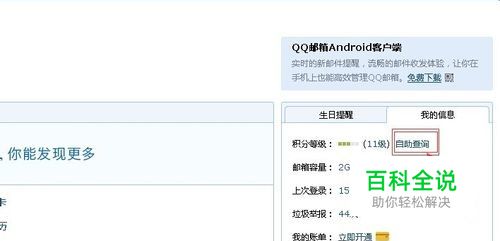 在“我的信息”里面有一个积分等级后面的“自助查询”,点击打开