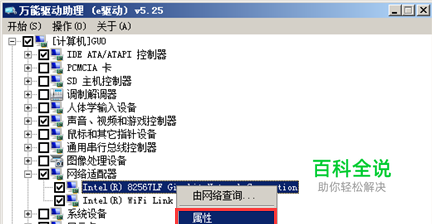 然后打开助理,让助理自己搜索你的网卡驱动型号,然后右键点属性看一下