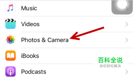 向下滚动到设置应用程序内的第六部分,然后选择图片和相机选项