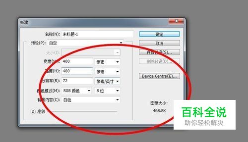 启动pscs5软件,执行文件--新建命令,创建空白文档,并填充白色,参数如下图所示