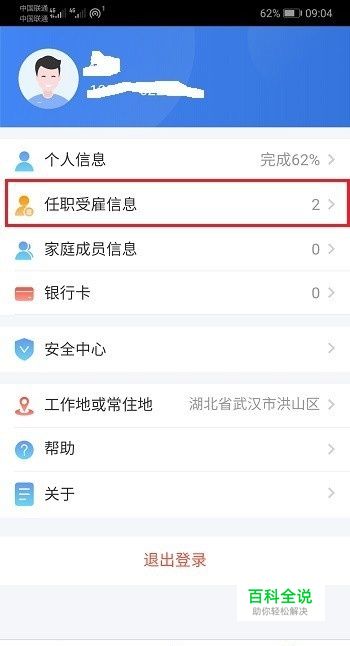 第二步进去个人中心界面之后,点击任职受雇信息,如下图所示: