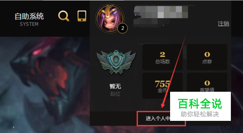 首先打开LOL英雄联盟的官网,然后登录游戏账号后点击右上角的“进入个人中心”按键。