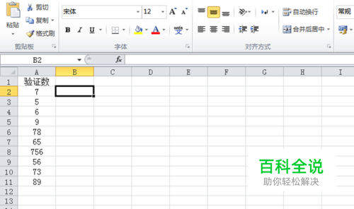 首先启动excel2010,新建一个工作薄,在单元格中输入一系列需要验证的数据。
