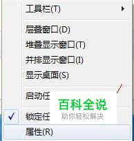 在任务栏空白处鼠标右键属性