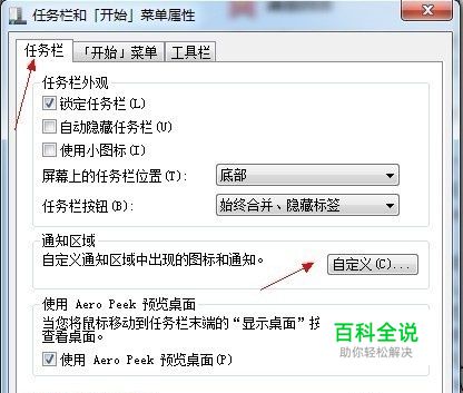 “任务栏”选项卡下单击“自定义”按钮