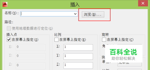 可以选择在屏幕上指定,或自行选择坐标位置,或者插入时“分解”,点击确定。