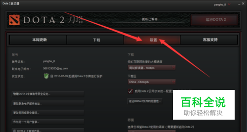 接下来我们打开Dota2,但是不要登入游戏,在开始的客户端页面我们会发现有一个“设置”按钮,点击进入之后,会出现下列的画面