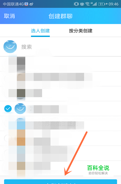 在“ 选人创建”选项中选择好友,在前方的 圆形上点击打勾;