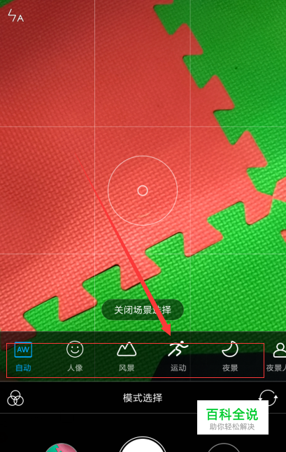 然后在模式里边选择 场景选择,所谓的场景就是用户当时启动相机需要拍摄物品所处的场景里边就包含运动模式。