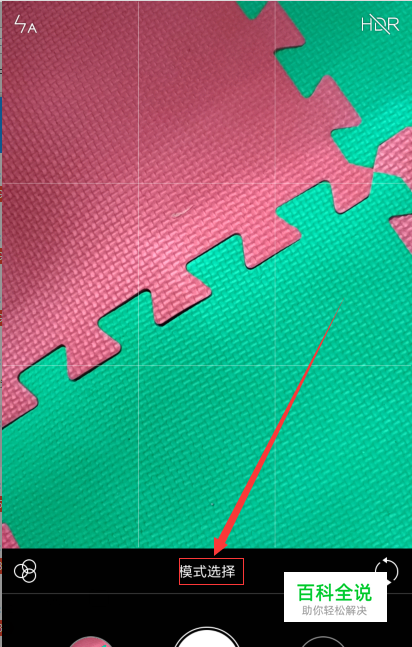 调出拍摄界面后,点击手机屏幕下方中间的 模式命令,如图所示,一般默认的模式是正常的没有经过设置的。