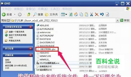 2,然后到释放镜像文件夹中找一下GHOSTWIN8.gho这个文件,这个是Ghost主要文件,稍后会要用它,所以看一下,记位它的位置。