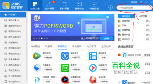 在主页面中,右上角的搜索,可以搜索需要下载的软件。